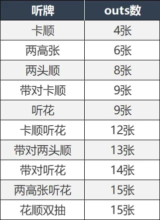 根據(jù)下注尺度計(jì)算所需勝率,然後利用二四法則計(jì)算聽牌勝率,不考慮發(fā)出outs依然落後的情況: